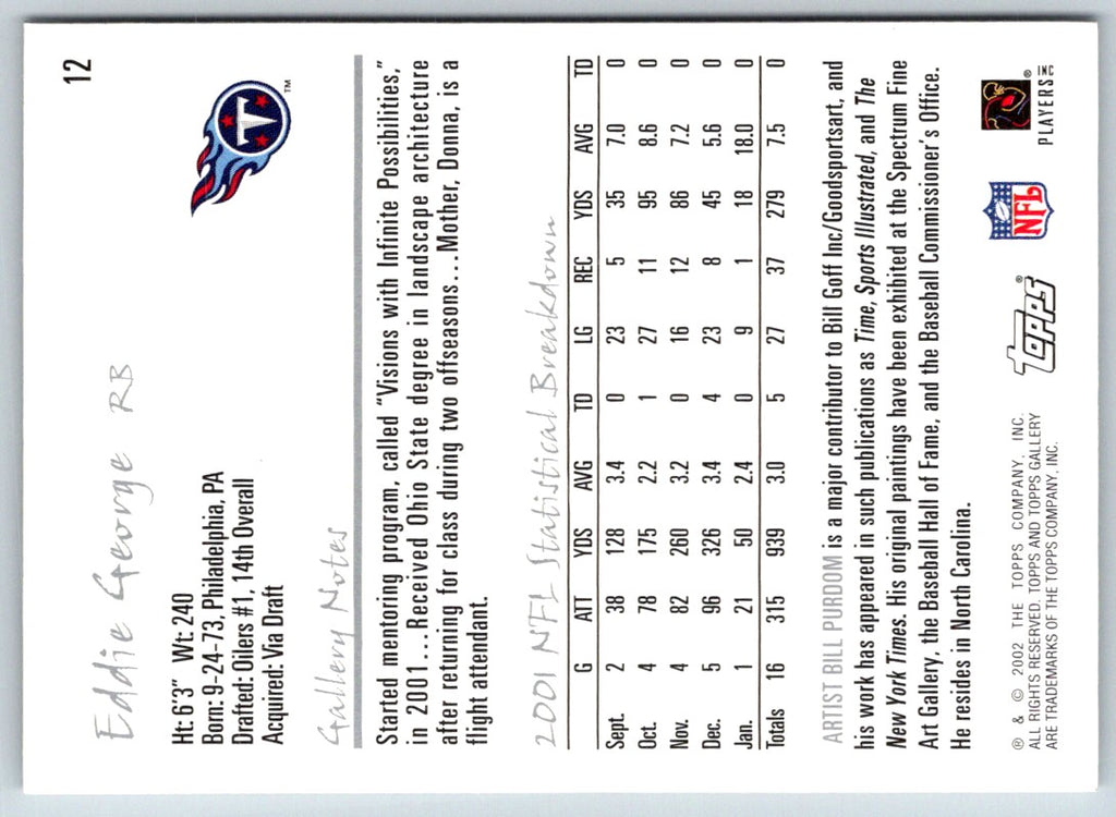 2002 Topps Gallery Eddie George #12