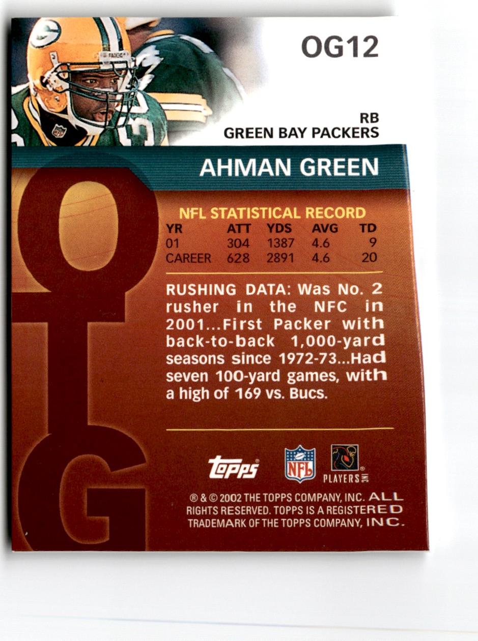 This 2002 Topps Own The Game Ahman Green #OG12 card is an essential addition to any collection. The card features an action shot of the Pro Bowl running back in his signature Green Bay Packers uniform. With Green's stats and career accomplishments listed on the back, this card is a perfect way to commemorate the career of one of the best running backs of the era. Add this card to your collection and own the game!