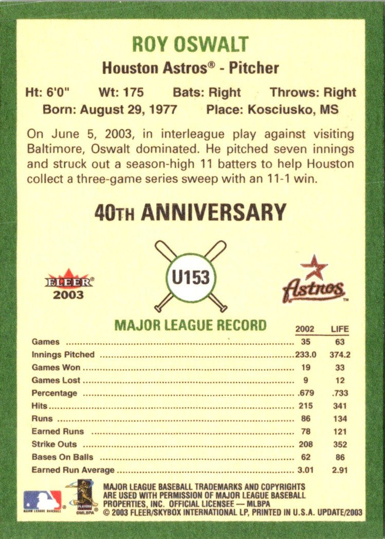 2003 Fleer Tradition Update Roy Oswalt #153