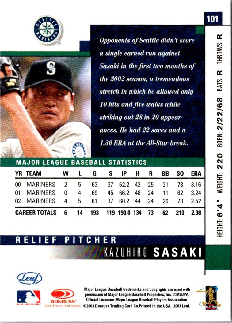 Description: 2003 Leaf Kazuhiro Sasaki #101