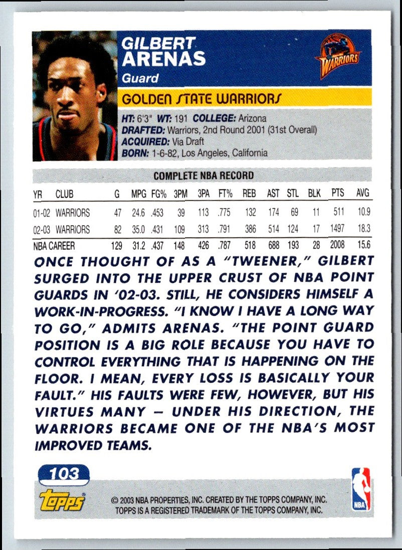 2003 Topps 1st Edition Gilbert Arenas #103