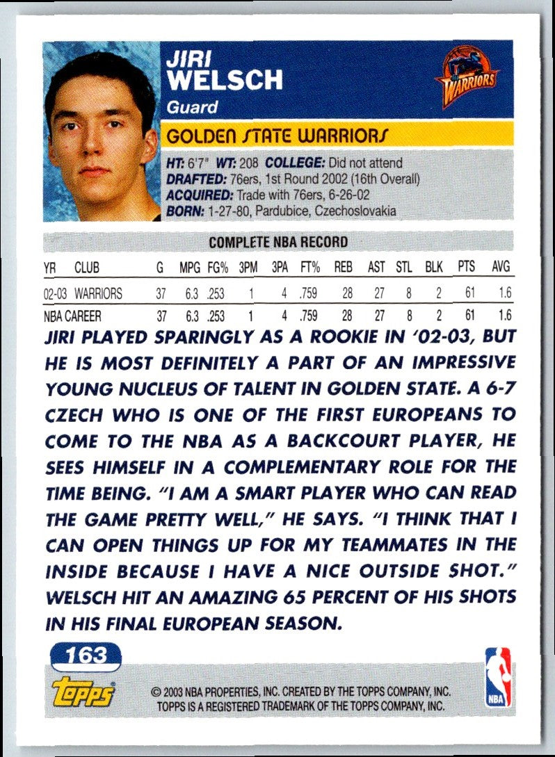 Description: 2003 Topps 1st Edition Jiri Welsch #163