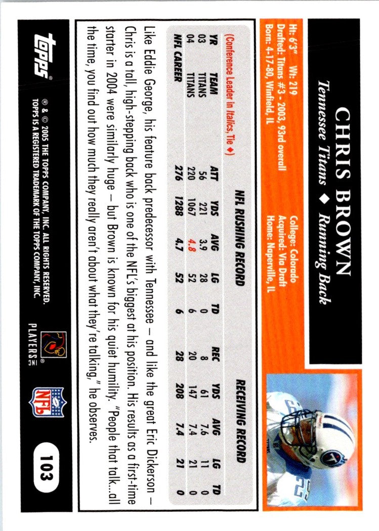 This 2003 Topps Chrome Troy Brown card (#103) is a great addition to any New England Patriots fan's collection! This card features a full-color image of Brown in his Patriots uniform with the team logo in the background. The card displays Brown's vital stats, including his position, height, weight, birth date, and college. The card also showcases his career accomplishments, such as his Pro Bowl selection in 2001. This card is the perfect way to commemorate a Patriots legend!