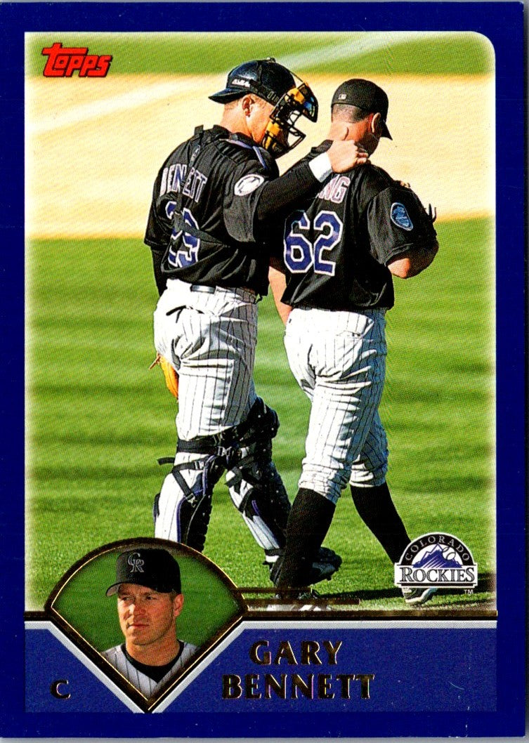 This 2003 Topps Gary Bennett #198 Colorado Rockies trading card is a must-have for any serious collector. Featuring a full-color photo of Bennett in mid-swing on the front, the card also showcases his career stats and highlights on the back. A great collectible that celebrates the career of a great player. Add this card to your collection today and show your Rockies pride!