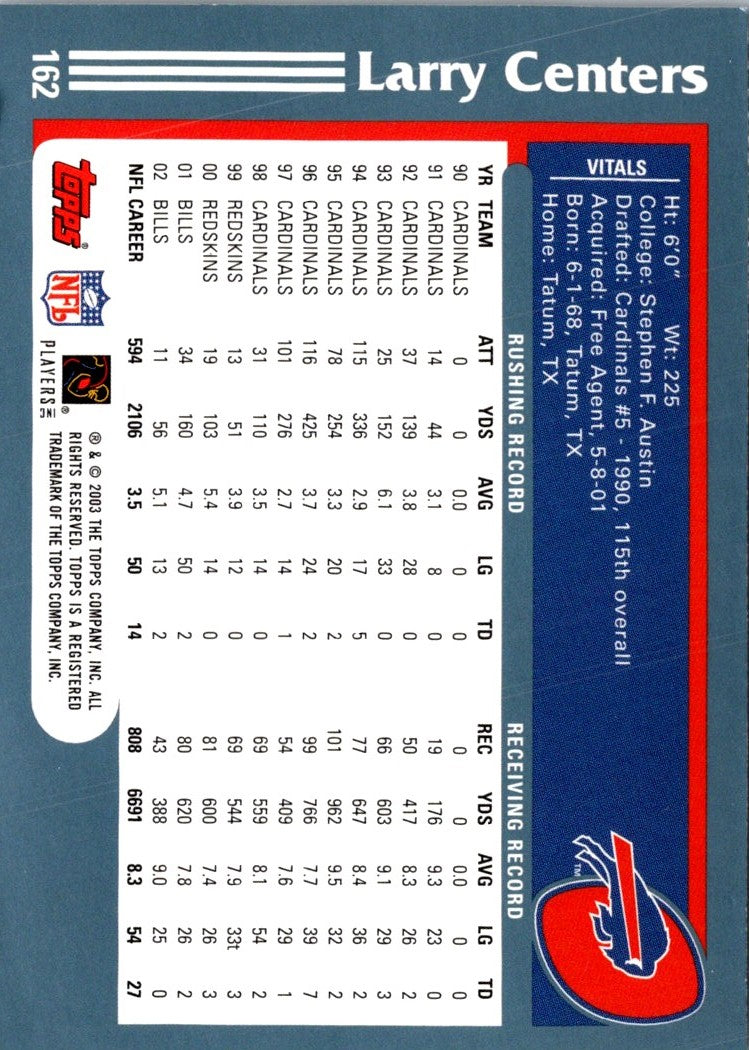 Description: 2003 Topps Larry Centers #162