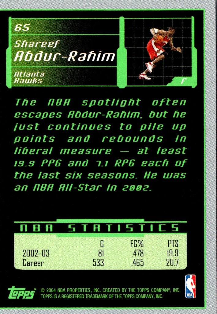 Description: 2003 Topps Rookie Matrix Shareef Abdur-Rahim #65
