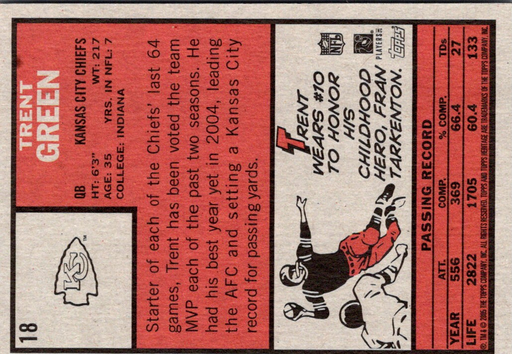 This 2003 Topps Trent Green #1 Kansas City Chiefs card features Green in action as one of the most successful quarterbacks in the NFL. With a bold color scheme and a detailed image of Green in his classic red and gold uniform, this card is a must-have for any true Chiefs fan. The back of the card features an up-close look at Green's stats and accomplishments, giving you an in-depth look at his impressive career. Add this card to your collection today and honor one of the greatest Chiefs players of all time!