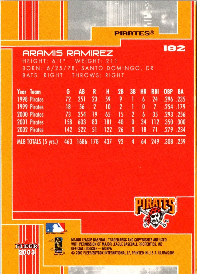 Description: 2003 Ultra Gold Medallion Aramis Ramirez #182