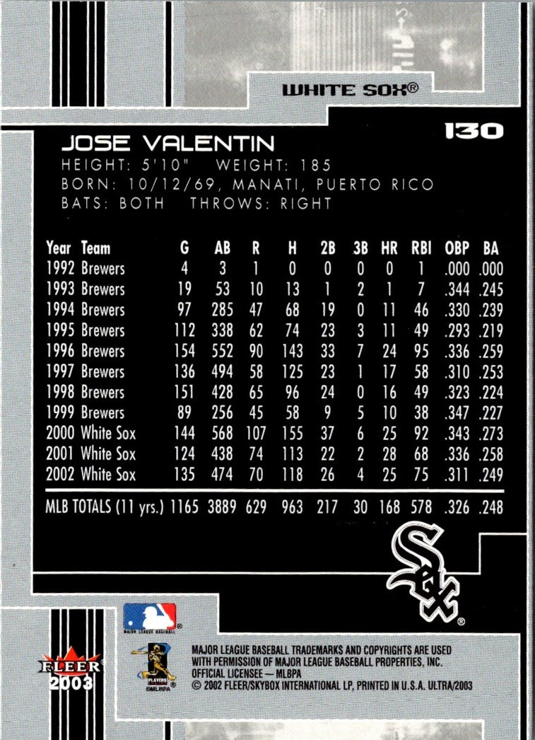 Description: 2003 Ultra Gold Medallion Jose Valentin #130