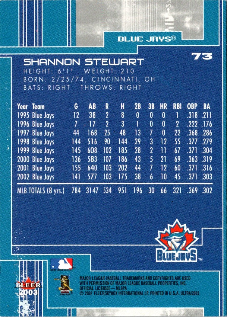 Description: 2003 Ultra Gold Medallion Shannon Stewart #73