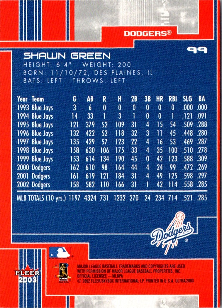 Description: 2003 Ultra Gold Medallion Shawn Green #99