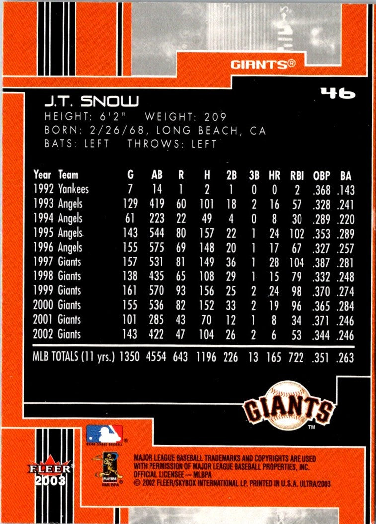 Description: 2003 Ultra J.T. Snow #46