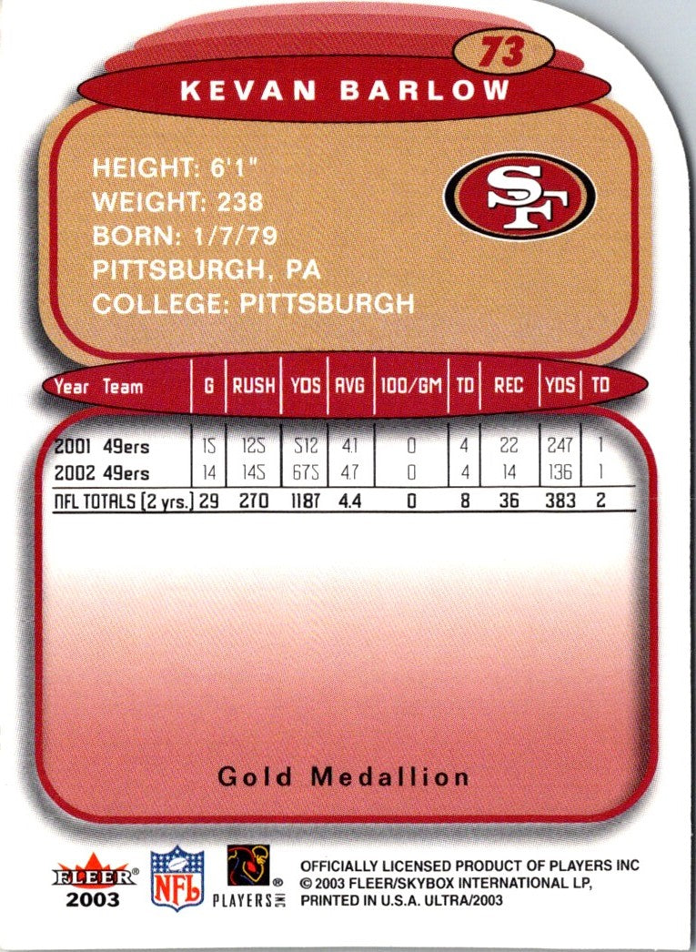 2003 Ultra Kevan Barlow #73