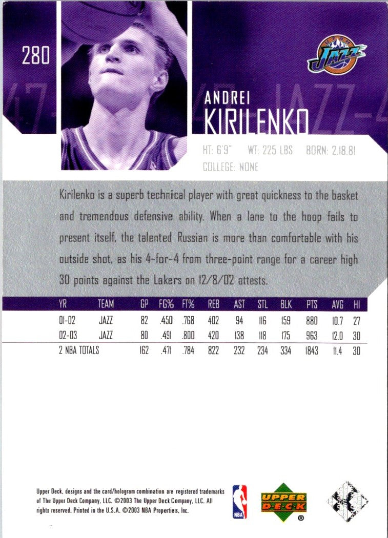 Description: 2003 Upper Deck Andrei Kirilenko #280