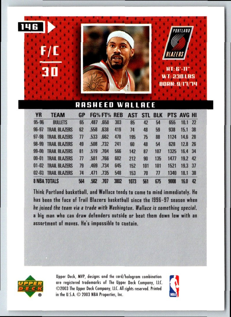 2003 Upper Deck Black Diamond Rasheed Wallace #30