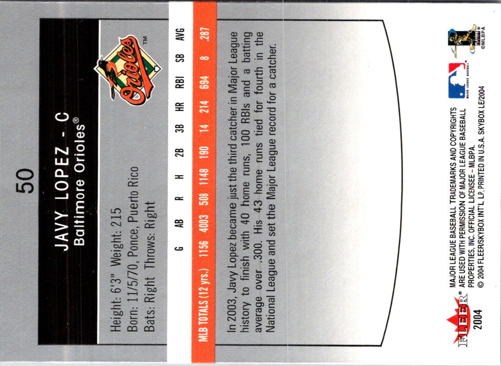 2004 SkyBox LE Javy Lopez #50
