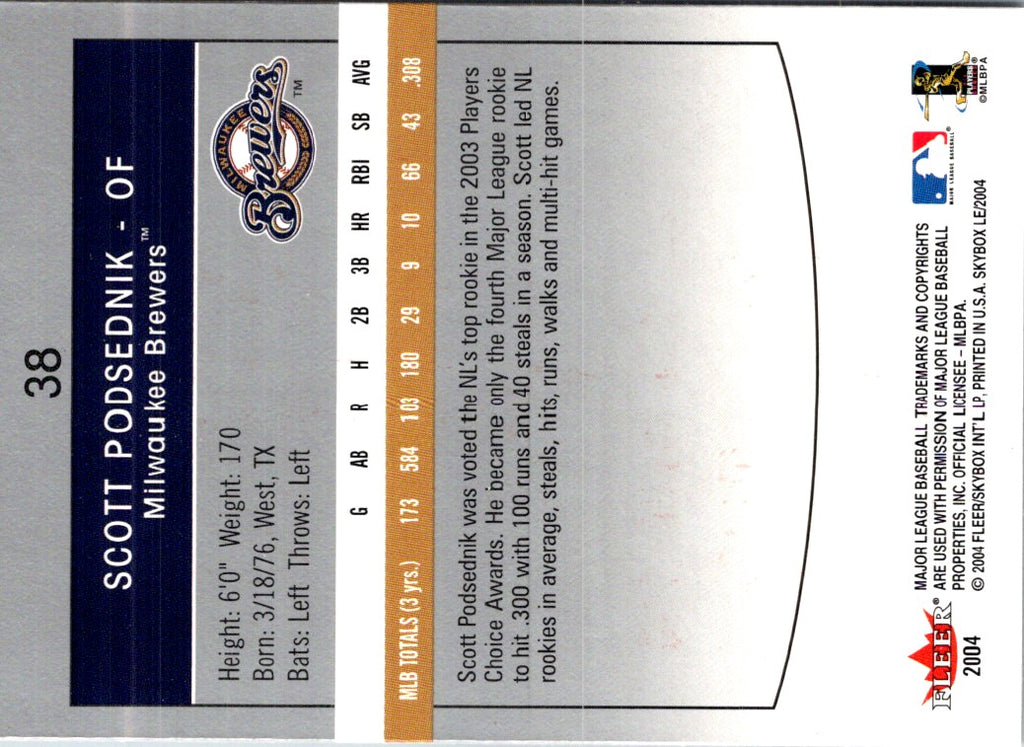 Description: 2004 SkyBox LE Scott Podsednik #38