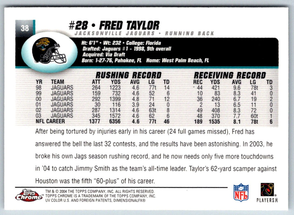 2004 Topps Chrome Fred Taylor #38