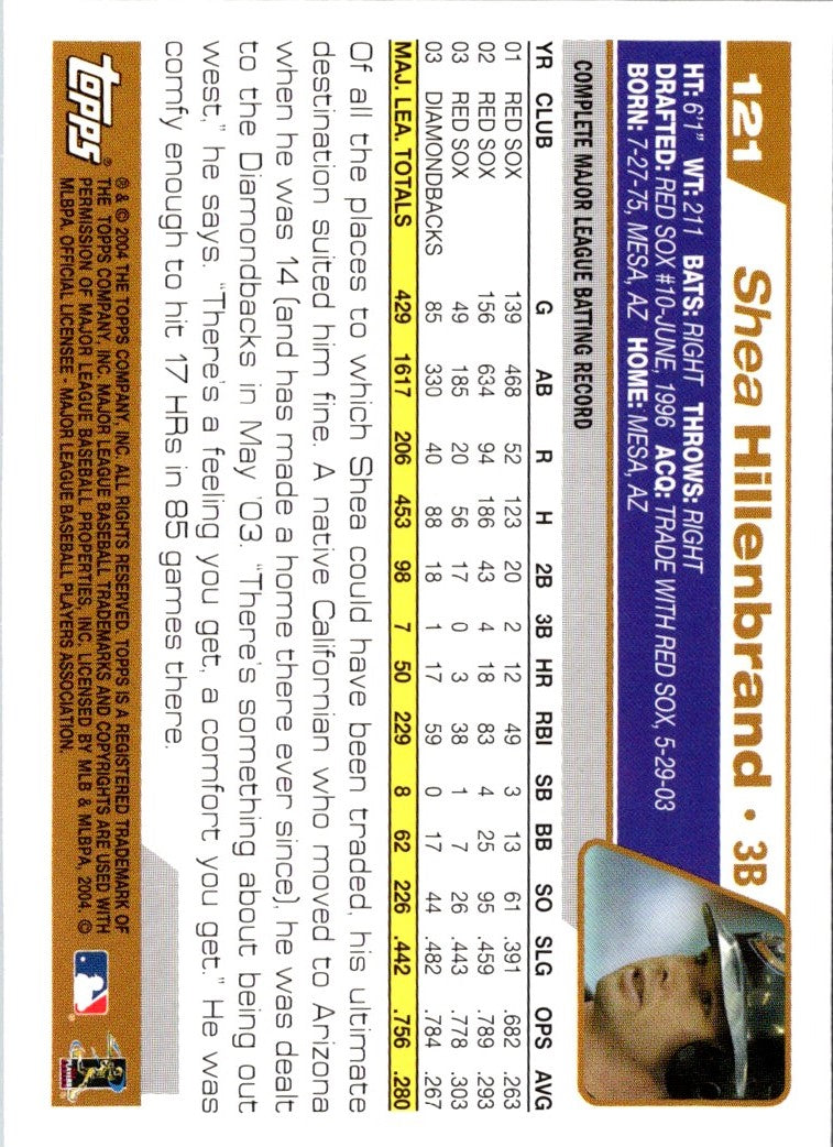 This 2004 Topps Opening Day Shea Hillenbrand #121 Arizona Diamondbacks card is a great addition to any collection. Featuring a great photo of Hillenbrand on the card, it also features his stats and team logo. It is printed on glossy card stock, making it a great collectible for any fan. Add this card to your collection today and celebrate the career of one of the most beloved Diamondbacks players.