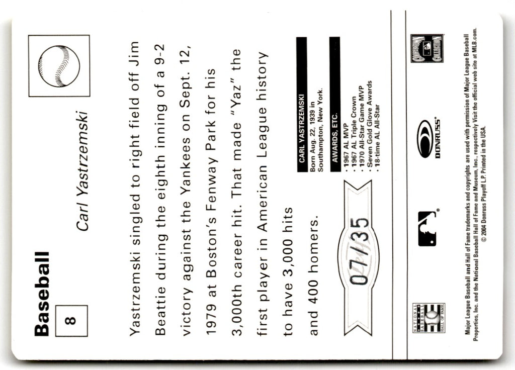 Description: 2005 Leaf Sportscasters 35 Teal Running-Glove Carl Yastrzemski #8 07/35