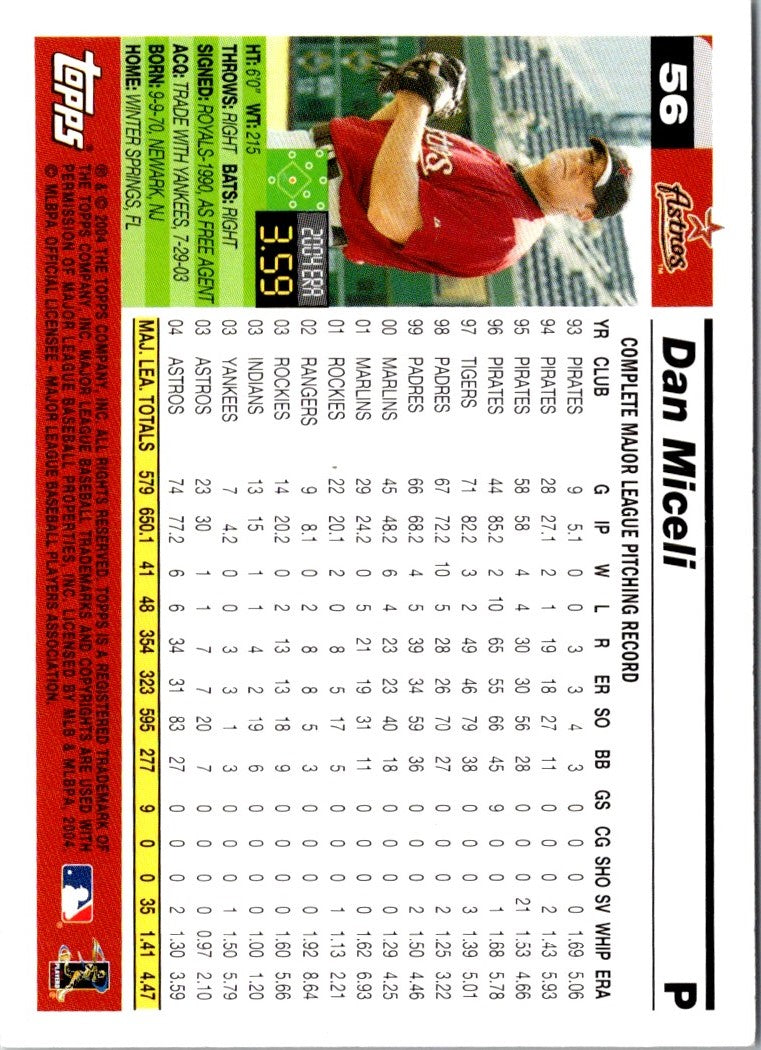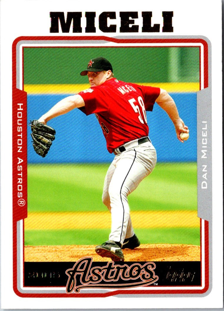 This 2005 Topps Dan Miceli #56 Houston Astros card features a full-color action photo of the Astros' right-handed reliever. The card's reverse side includes a detailed statistical summary of Miceli's career along with fun facts about the pitcher. Add this card to your collection to celebrate one of the team's most reliable relief pitchers. This card is a must-have for any Astros fan!