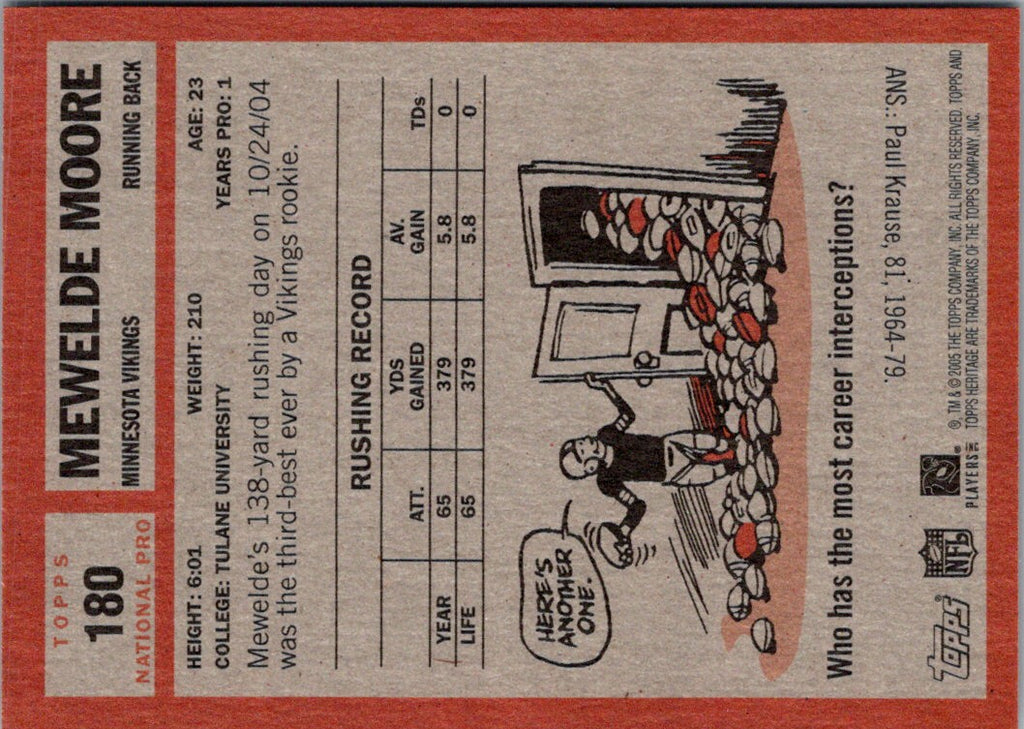 Description: 2005 Topps Heritage Mewelde Moore #180