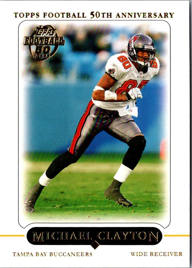 This 2005 Topps Michael Clayton #216 is the perfect card for any Tampa Bay Buccaneers fan! Featuring an image of Michael Clayton in his Buccaneers gear, this card is sure to be a great addition to any sports card collection. The card is in near-mint condition, and features stats from Clayton's rookie season. With its vibrant colors and iconic logo, this card is sure to bring back memories of the Buccaneers' 2005-2006 season. Add this card to your collection today and celebrate one of the greatest players to ever wear the red and pewter!