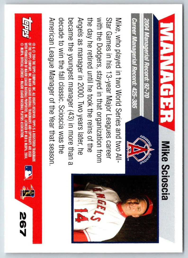 2005 Topps Mike Scioscia #267 Anaheim Angels is an essential collectible for any fan of the former catcher and manager of the Angels. Show your allegiance to the team and to the beloved Scioscia with this card, which features a crisp, colorful photo of the man himself in his Angels gear. The back of the card includes a detailed biography of Scioscia's impressive career and the highlights of his time with the Angels. This card is sure to be a treasured item for any Angels fan. Add it to your collection today!