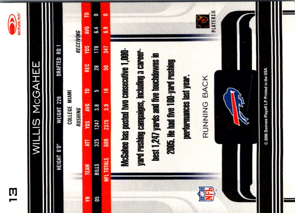 2006 Donruss Gridiron Gear Willis McGahee #13