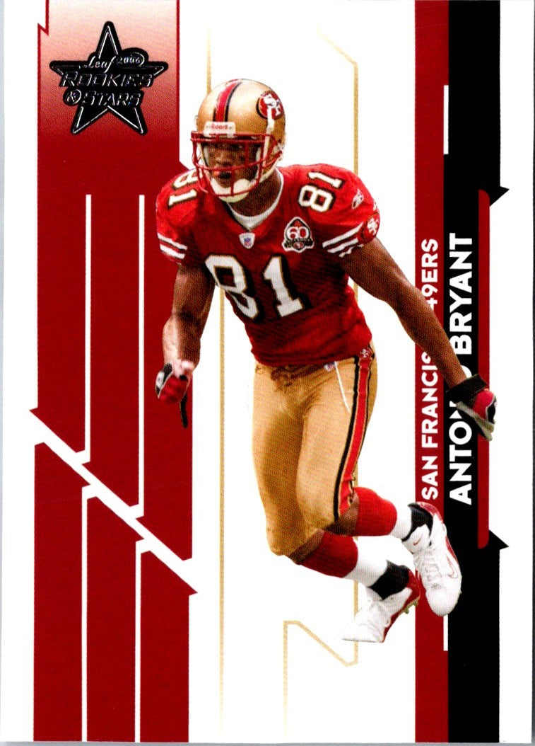 2006 Leaf Rookies & Stars Antonio Bryant #88 San Francisco 49ers is the perfect piece for any football fan. Featuring an incredibly detailed design, this card is sure to stand out in any collection. With its unique, colorful design, this card will be a great addition to any fan's collection. Featuring NFL wide receiver Antonio Bryant with the San Francisco 49ers, this card is sure to be a conversation starter. Show your support for the 49ers and add this card to your collection today!