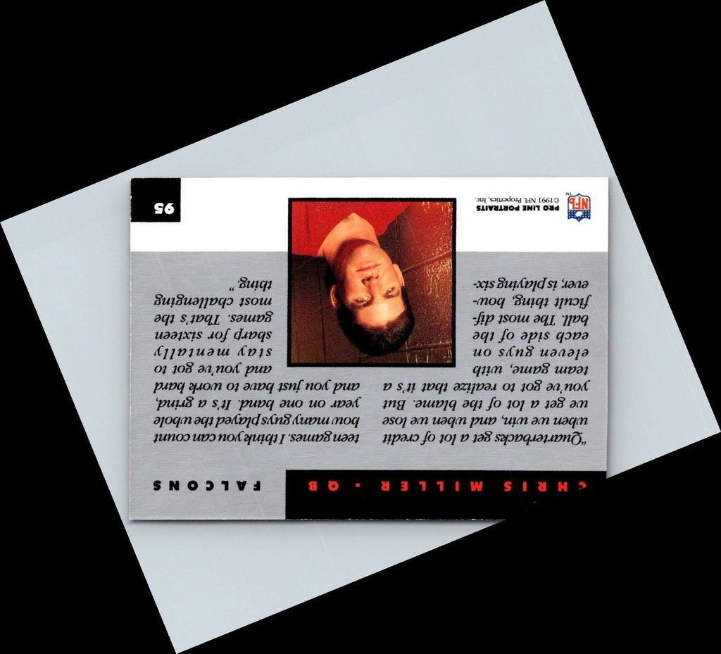 This 2006 Pro Line Chris Miller #95 football card is a must-have for any collector. Featuring a full-color action photo on the front, this card captures Miller during his peak performance in the 2006 NFL season. On the back, the card details Miller's stats and career highlights. With its bold, vibrant colors, this card is sure to stand out in any collection. Add it to your collection today and be the envy of your friends.