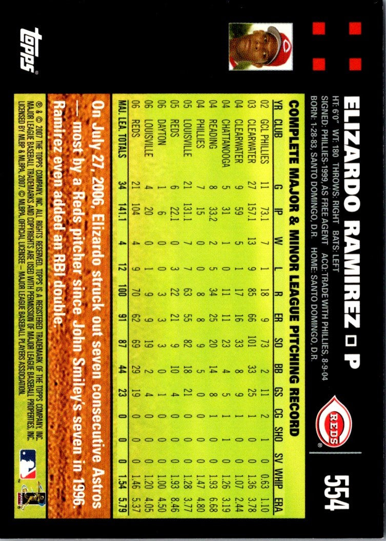 This 2007 Topps Elizardo Ramirez #554 Cincinnati Reds trading card is the perfect addition to any Reds fan's collection! Featuring a stunning action shot of Elizardo in his signature Reds uniform, the card is a great way to commemorate the all-star right-hander's impressive career with the team. Topps' classic design and quality print make this card a must-have for any Reds fan. Add this card to your collection today and celebrate Elizardo's time in Cincinnati!