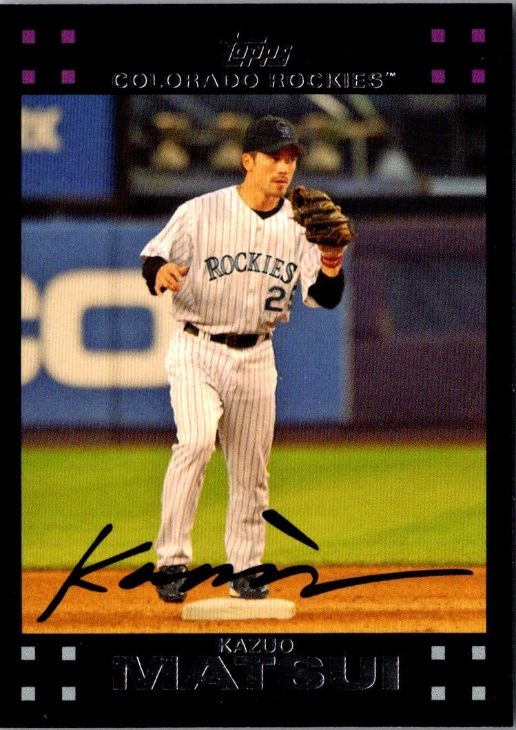 2007 Topps Kazuo Matsui #210 Colorado Rockies card is a must-have for any baseball collector. This card features a full-color photo of the former All-Star infielder, along with his name and team logo printed on the front. The back of the card includes his statistics, biographical information, and career highlights. This card is the perfect way to commemorate the career of one of the best Japanese players in Major League history. Add this card to your collection and show your support for Kazuo Matsui and the Colorado Rockies!