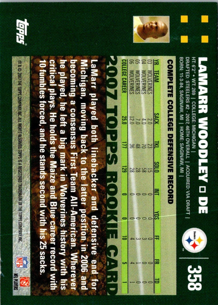 Description: 2007 Topps Lamarr Woodley #358 Rookie