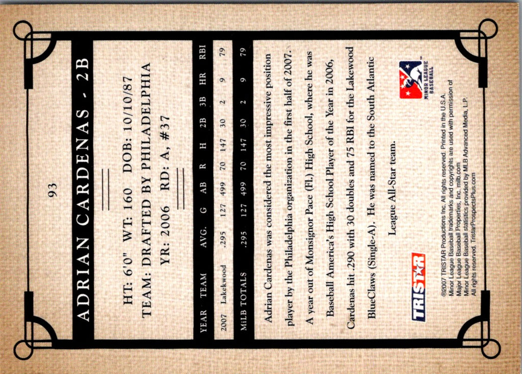 2007 Tristar Prospects Plus Adrian Cardenas #93