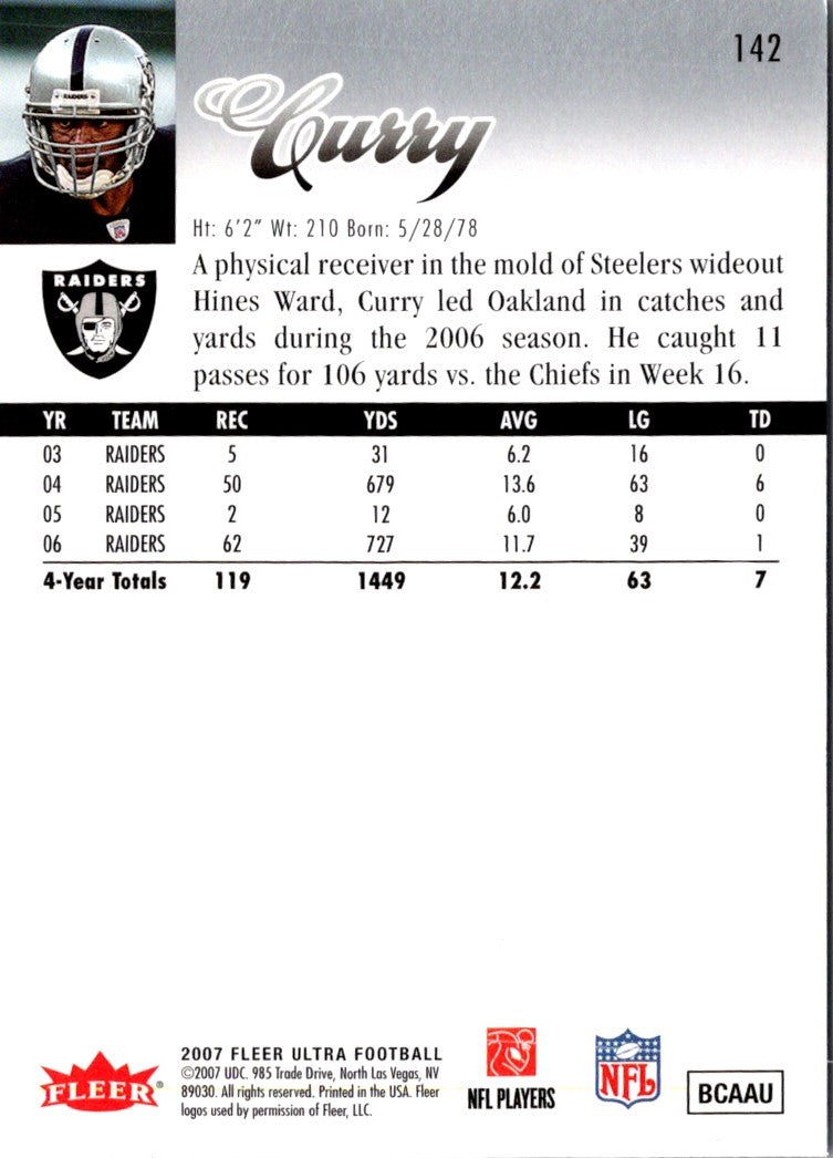 This 2007 Ultra Ronald Curry #142 Oakland Raiders card is a must-have for any collector! This card features Curry in his Raiders uniform, and it is a great way to commemorate his time with the team. The card is printed on high quality cardstock, which ensures that it will last for years to come. The card also features colorful Oakland Raiders graphics, making it a great addition to any collection. Get your hands on this card today and be the proud owner of a piece of NFL history!
