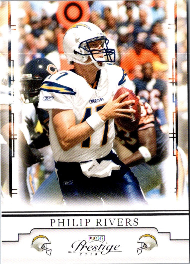 This 2008 Playoff Prestige Philip Rivers #80 San Diego Chargers collectible card is a must-have for football card collectors! Celebrate the career of this Pro Bowl quarterback with this gorgeous card. Featuring a full-color action shot and a detailed, full-color back, the card captures Rivers' energy and skill on the field. The card is professionally printed on a high-quality cardstock and is perfect for framing or displaying. Add this card to your collection and pay tribute to one of the greatest quarterbacks of all time!