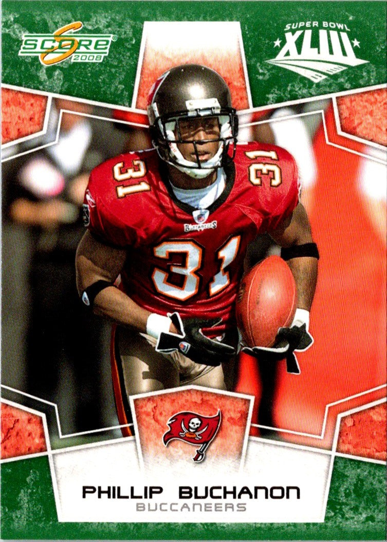 2008 Score Super Bowl XLIII Phillip Buchanon #309 Tampa Bay Buccaneers is a must-have for any Tampa Bay Buccaneers fan. Featuring the team colors and graphics, this card captures Phillip Buchanon in action and is a great way to commemorate the Super Bowl XLIII victory. This card is a perfect addition to any collection and a great way to show your Tampa Bay Buccaneers pride. Get your hands on this exclusive card and relive the Super Bowl XLIII glory.