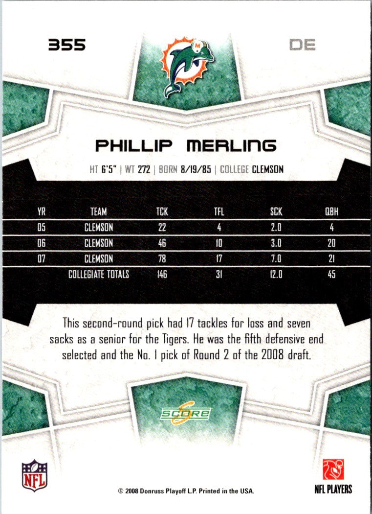 2008 Score Super Bowl XLIII Phillip Merling #355