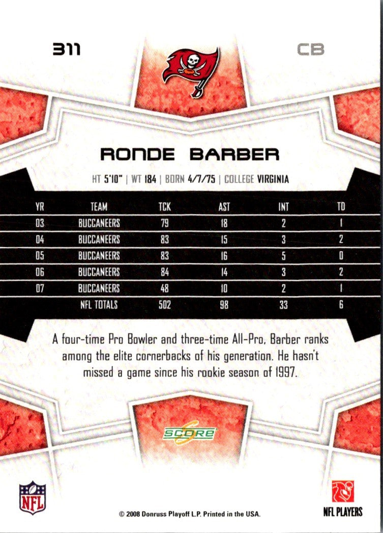 2008 Score Super Bowl XLIII Ronde Barber #311