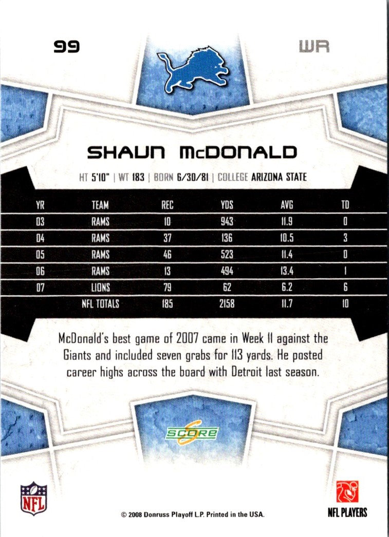 2008 Score Super Bowl XLIII Shaun McDonald #99