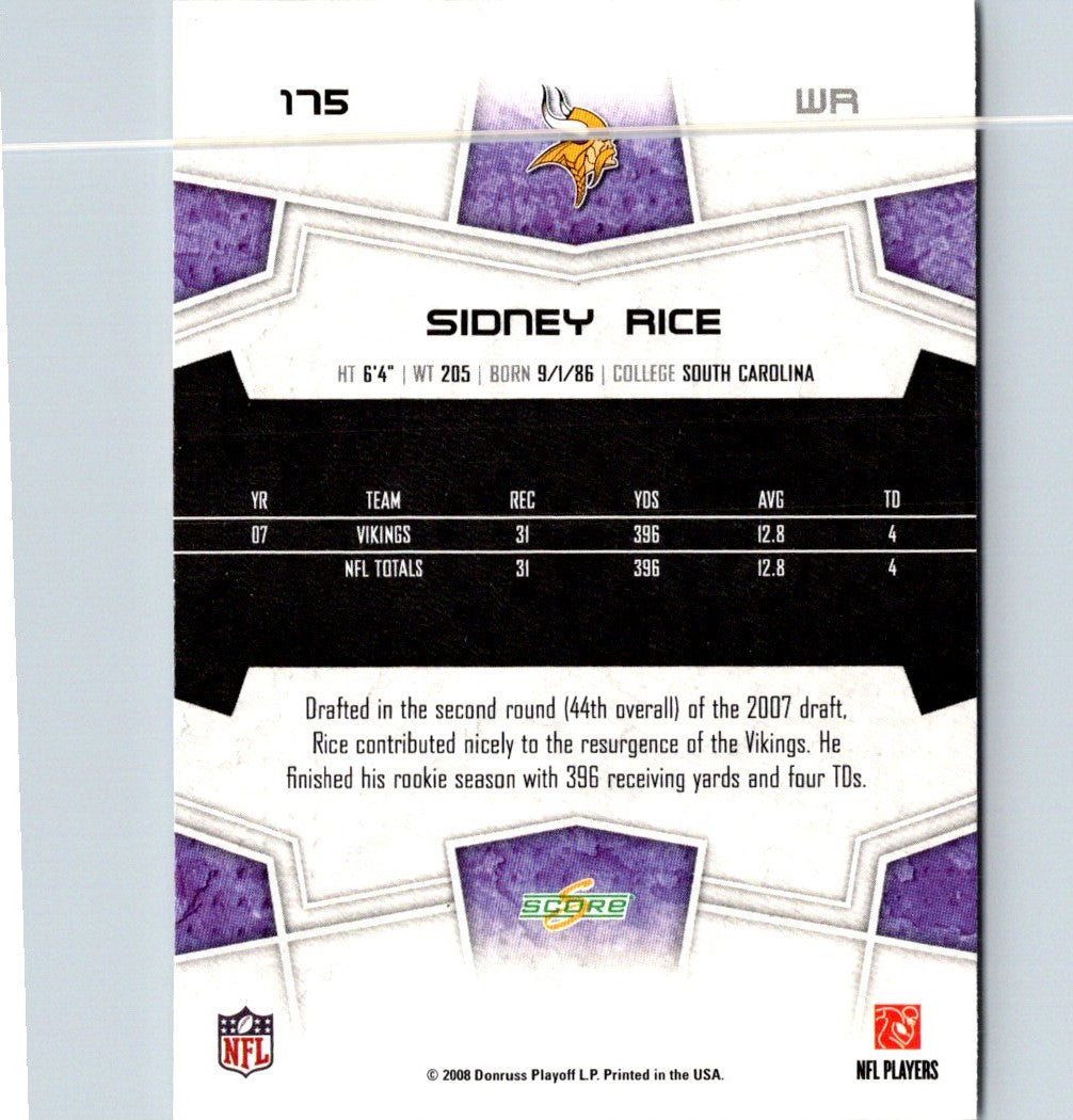 2008 Score Super Bowl XLIII Sidney Rice #175
