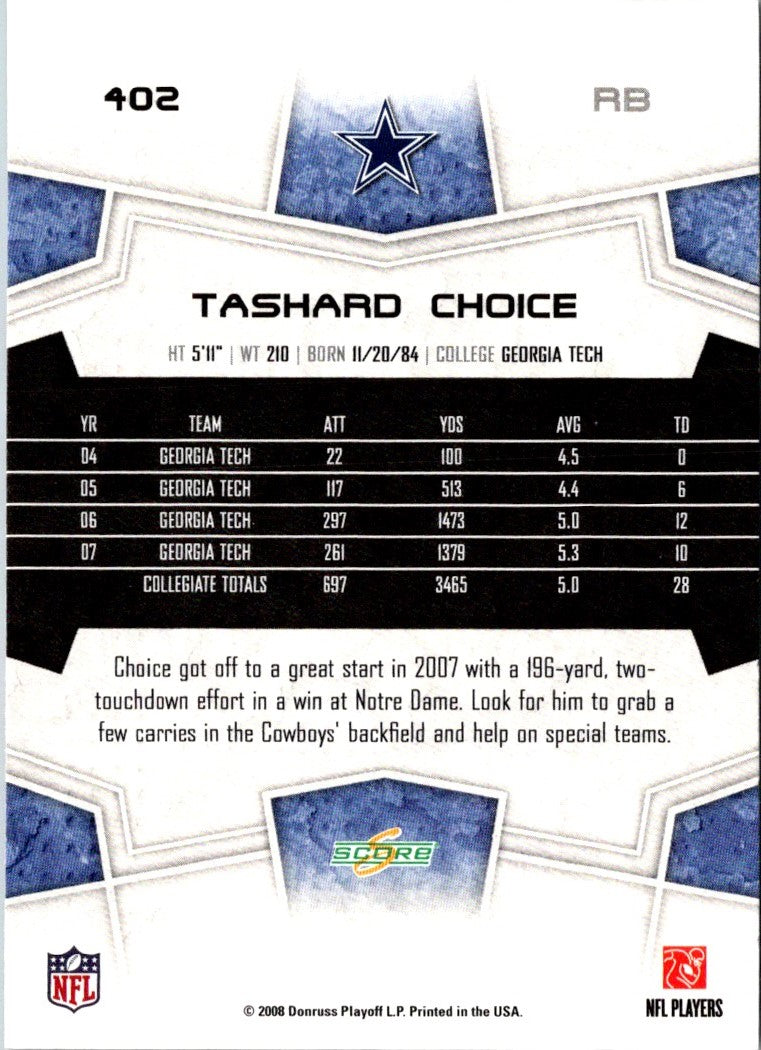 2008 Score Super Bowl XLIII Tashard Choice #402