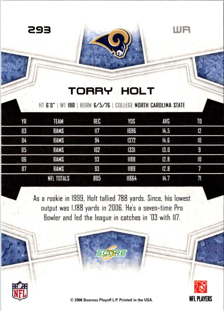 This 2008 Score Super Bowl XLIII Torry Holt #293St. Louis Rams card features a stunning full-color action shot of the Pro Bowl wide receiver. Holt was a key figure in leading the Rams to the Super Bowl in 2001, and his career accomplishments make this card a must-have for any fan. The card features bold colors and sharp, detailed graphics, making it a great addition to any collection. Add this iconic card to your collection today!