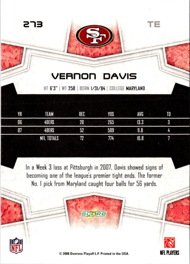 2008 Score Super Bowl XLIII Vernon Davis #273