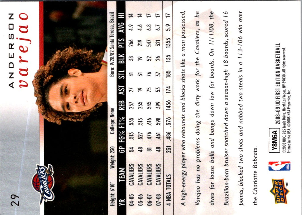 Description: 2008 Upper Deck First Edition Anderson Varejao #29