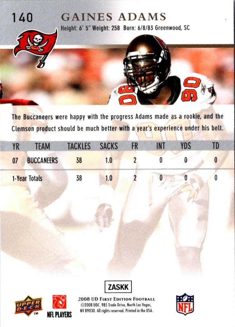 This 2008 Upper Deck First Edition Gaines Adams #140Tampa Bay Buccaneers is the perfect addition to any football fan's collection! The card features a vibrant full-color image of Adams in his Tampa Bay Buccaneers uniform, and captures him in the midst of a powerful move to the end zone. The back of the card displays Adams' stats and career highlights, and is an essential piece for any Bucs fan. Add this to your collection today and celebrate one of the greatest Buccaneers of all time!