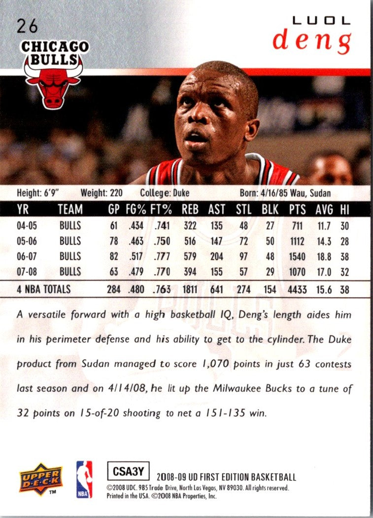 Description: 2008 Upper Deck First Edition Gold Luol Deng #26