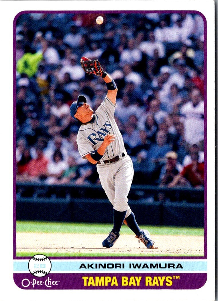 This 2009 O-Pee-Chee Akinori Iwamura #317Tampa Bay Rays card features a great color photo of Iwamura, the Rays' All-Star third baseman. It is a must-have item for any Rays fan. Iwamura was an important part of the Rays' World Series run in 2008 and was a fan favorite throughout his time in Tampa Bay. This card is a great addition to any Rays collection and an excellent way to commemorate Iwamura's time with the Rays.