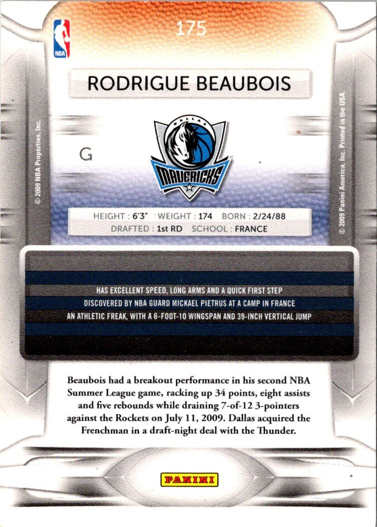 Description: 2009 Panini Prestige Rodrigue Beaubois #175 Rookie